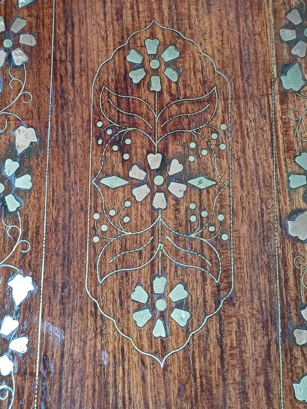Plateau en bois avec marqueterie en laiton et cuivre rouge. XXEME Siècles. Longueur: 47cm Largeur: 30cm.